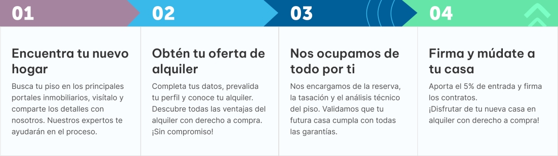 En Gradual puedes elegir cualquier piso en el mercado sobre el cual tendrás un derecho exclusivo de compra. Debes permanecer un mínimo de 3 años de alquiler, en los que ahorrarás hasta un 30% de la mensualidad para comprar la vivienda. Mientras, podrás pintarla y decorarla, tener mascotas... ¡Hacerla tuya!